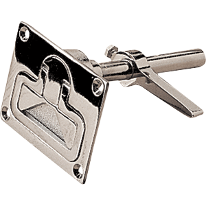 Constructed of sand cast brass with a chrome plated finish. These Hatch Handle Latches are ideal for use on doors, hatches, lazarettes, and dock boxes. Handle pivots out to open hatches and lays flush when not in use for a clean appearance. Adjustable locking arm adds additional security. Installs with four #8 FH fasteners (not included). Once installed, the locking arm can be trimmed to length.